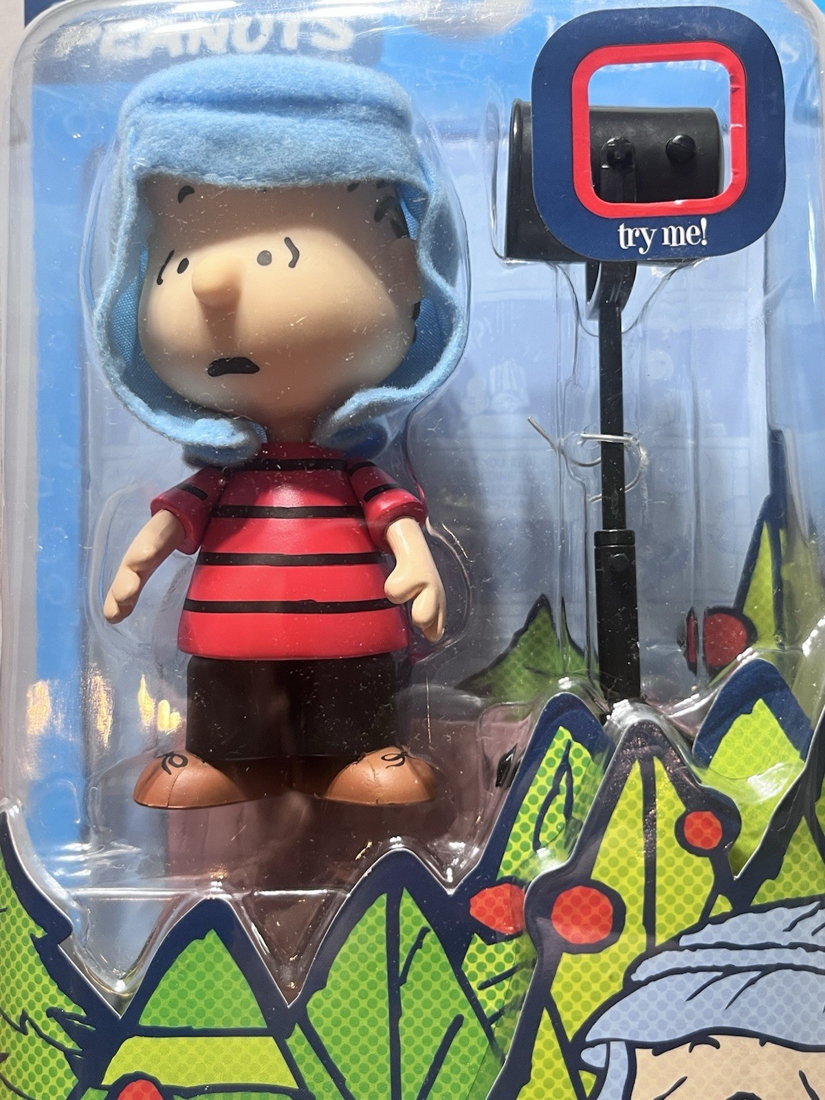 The Linus Van Pelt with Shepard Cap Figure from Forever Fun is a collectible action figure inspired by the Peanuts franchise, specifically targeted for Christmas enthusiasts. Made of plastic and released in 2007, this figure features Linus Van Pelt wearing his iconic cap, captured in a scene from "A Charlie Brown Christmas." Some creasing in package. See pictures Light works