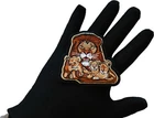 3.2x3 inch. Embroidered Patch with Plastic Iron on Backing. Patch can be sewn on to Leather Vests, Jackets or Chaps. Patch can also be ironed on to Denim Shirts, Hats or Bags. Iron on Patch at 280 Degrees Fahrenheit for 30 Seconds. Ironing on Application is a semi permanent way of attaching patches. Sew on the Patch for Permanent application. Do not iron on patches to Leather or Nylon Materials.