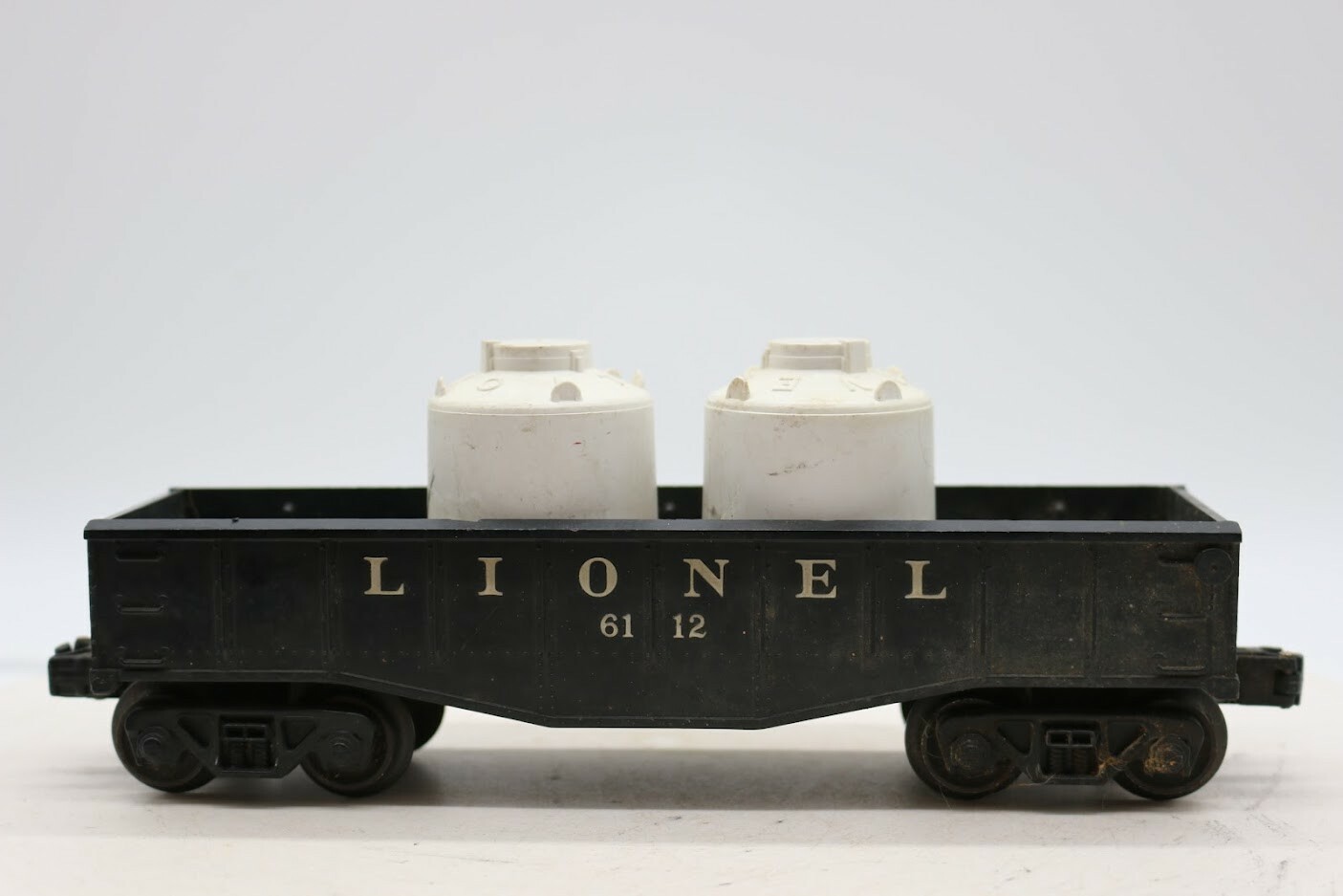 Lionel 6112 Postwar Gondola Car w/ 2 Air Containers Comes as is and Ready to Roll!!! We ships USPS priority mail. Like what you see make an offer. We will entertain any offers or opinions you would like to share with us. PLEASE see photos for detailed condition!! There may be pieces that are missing or broken including, but not limited to, couplers, brake wheels, steps, ladders, railings, etc. May need detailed cleaning. PLEASE LOOK AT THE PHOTOS CAREFULLY BEFORE PURCHASING!! If you are purchasing more than one item from us and would like combined shipping, PLEASE request an adjusted invoice from us while still in the cart and BEFORE paying. Ebay does not usually calculate combined shipping accurately and you might get overcharged. Please be aware that when we photograph items, we use lighting that will show the details well. Although we try to present the product as accurately as possible, the lighting may affect the overall look of the item by appearing lighter/darker or possibly a different hue than the actual item. Depending on the type of lighting you have in your home, there may be some differences between the photos and the actual item. If this is a concern of yours, please feel free to request additional photos made in natural lighting or ask for a more detailed description of the item PRIOR TO PURCHASE! PLEASE NOTE: We greatly appreciate your interest in our item for sale. We look forward to a pleasant, quick and satisfying transaction for everybody, so please note the following information before bidding. Thank you! ITEM DESCRIPTIONS: * We will try to describe items well and provide plenty of photos. Please review these carefully before bidding or purchasing. * Only the items pictured and described are what you will receive when purchased. * We will occasionally offer an item clearly marked "AS-IS". This means that we are not sure if it works because we are unable to test it for whatever reason. We will offer these at a discounted price than a similar "working" item. It is possible that these items will work fine, but it also is possible that these items are more useful for their parts. Please only bid on or purchase these items if you are well aware of this, as we will only provide refunds of actual item price (no shipping cost refunds) for these items. * If you have any questions that aren't addressed by the descriptions or photos, please feel free to ask before you bid. SHIPPING: * We usually do not offer shipping to international addresses, but ARE WILLING TO TAKE SPEICAL CONSIDERATIONS. * We try to pack items as carefully as possible, but damage may occur during shipping. If you receive an item that was damaged in shipping, please contact us and we will work with you to resolve the problem. * We will combine shipping costs for all items the same buyer purchases from us within 2 days. Please wait to pay for items until you're done shopping with us. Please contact us if you're expecting to buy more items from us, or to have us adjust the shipping costs. * We will usually ship items out within 24 hours of payment being received Sunday through Friday at noon. We will notify the buyer if there will be a delay in shipping for some reason. Please allow additional time for holidays and weekends when the post office is closed. If payment is received after noon (EST) on Friday, the item might not be shipped until the following Monday. * We do try to recycle shipping materials as much as possible. RETURNS: We abide by eBay's Money Back Guarantee. We definitely want our customers to be happy with their purchase! You may return an item within 30 days of receiving it with the following guidelines: * If the item is defective or damaged (unless we clearly marked the listing "AS-IS"), the buyer will receive a full refund after the buyer returns it and it is received by us. Customers who falsely claim their item is defective, damaged, or not as described in order to receive a full refund and free return shipping will be permanently blocked from making future purchases from us. * If the item is as described (including "AS-IS" items) and the buyer decides for any other reason than defective/damaged to return it, only the actual price of the item will be refunded once it has been returned and it is received by us. The buyer will be asked to pay all original and return shipping charges. This includes all reasons other than defective/damaged, including wrong size, wrong type, changed mind, etc. All "AS-IS" items will fall into this category of return. Please make sure the item is what you want before purchasing it. * Please contact us before initiating a refund request. FEEDBACK: We always leave feedback at the end of transaction. We consider the transaction to be over when we receive feedback from the buyer confirming the item arrived satisfactorily. If you are unsatisfied with your purchase please contact us before leaving neutral or negative feedback. WE APPRECIATE POSITIVE FEEDBACK IF YOU ARE SATISFIED WITH YOUR PURCHASE! THANK YOU FOR YOUR INTEREST IN THIS ITEM!