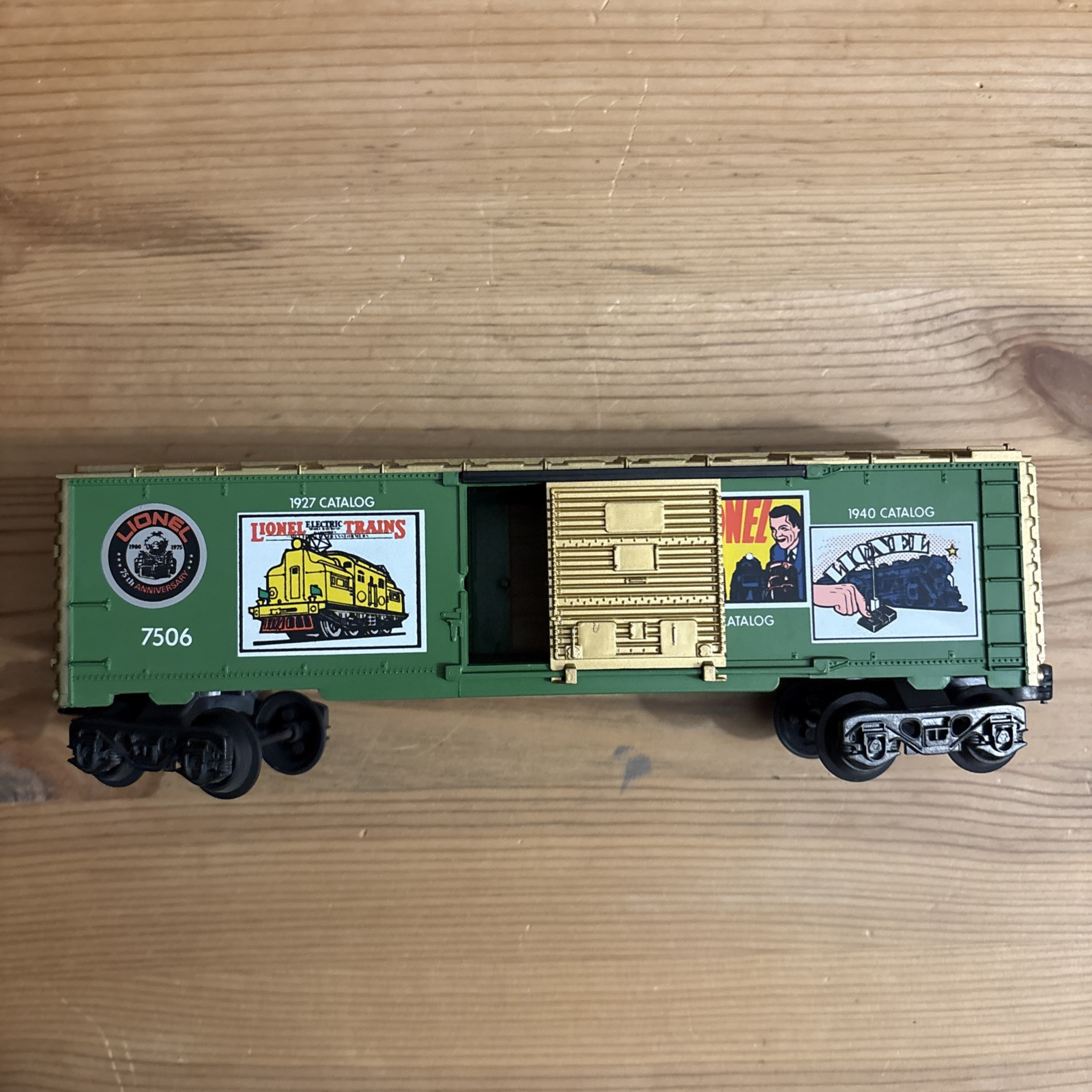 Used 75th anniversary Lionel 1927 catalog box car 7506. In good shape, sold as is.
