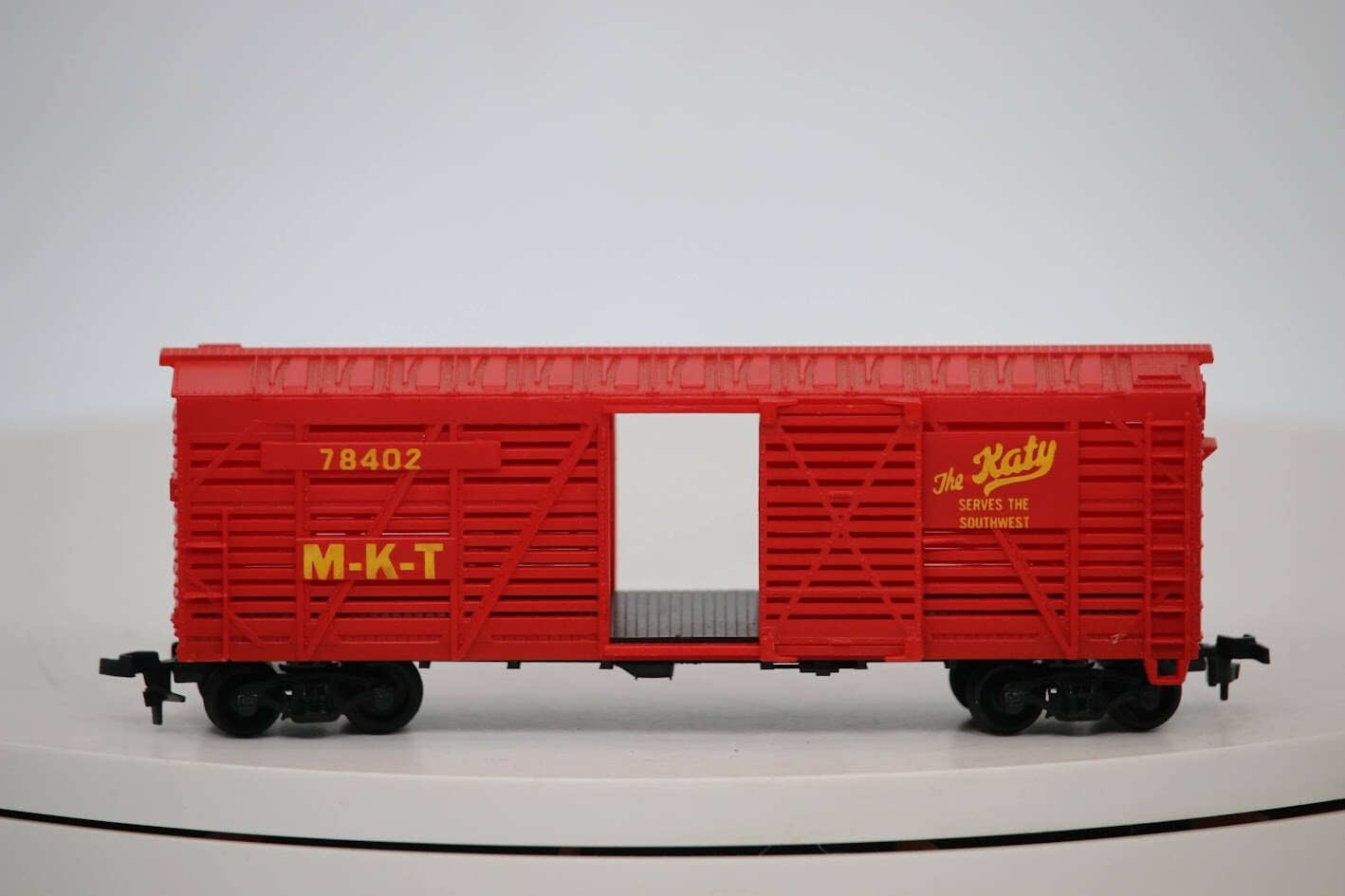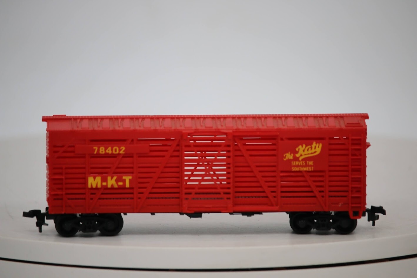 Lionel HO Scale "MKT - The Katy" 78402 40' Livestock Cattle Freight Train Car SKU#009223 Look closely at the pictures to see further details. We ships USPS PLEASE see photos for detailed condition!! PLEASE LOOK AT THE PHOTOS CAREFULLY BEFORE PURCHASING!! If you are purchasing more than one item from us and would like combined shipping, PLEASE request an adjusted invoice from us while still in the cart and BEFORE paying. eBay does not usually calculate combined shipping accurately and you might get overcharged. Please be aware that when we photograph items, we use lighting that will show the details well. Although we try to present the product as accurately as possible, the lighting may affect the overall look of the item by appearing lighter/darker or possibly a different hue than the actual item. Depending on the type of lighting you have in your home, there may be some differences between the photos and the actual item. If this is a concern of yours, please feel free to request additional photos made in natural lighting or ask for a more detailed description of the item PRIOR TO PURCHASE! PLEASE NOTE: We greatly appreciate your interest in our item for sale. We look forward to a pleasant, quick and satisfying transaction for everybody, so please note the following information before bidding. Thank you! ITEM DESCRIPTIONS: * We will try to describe items well and provide plenty of photos. Please review these carefully before bidding or purchasing. * Only the items pictured and described are what you will receive when purchased. * We will occasionally offer an item clearly marked "AS-IS". This means that we are not sure if it works because we are unable to test it for whatever reason. We will offer these at a discounted price then a similar "working" item. It is possible that these items will work fine, but it also is possible that these items are more useful for their parts. Please only bid on or purchase these items if you are well aware of this, as we will only provide refunds of actual item price (no shipping cost refunds) for these items. * If you have any questions that aren't addressed by the descriptions or photos, please feel free to ask before you bid. * There may be pieces that are missing or broken including, but not limited to, couplers, brake wheels, steps, ladders, railings, minor rust spots or cracks, etc. May need detailed cleaning SHIPPING: * We usually do not offer shipping to international addresses, but ARE WILLING TO TAKE CONSIDERATIONS. * We try to pack items as carefully as possible, but damage may occur during shipping. If you receive an item that was damaged in shipping, please contact us and we will work with you to resolve the problem. * We will combine shipping costs for all items the same buyer purchases from us within 2 days. Please wait to pay for items until you're done shopping with us. Please contact us if you're expecting to buy more items from us, or to have us adjust the shipping costs. * We will usually ship items out within 24 hours of payment being received Sunday through Friday at noon. We will notify the buyer if there will be a delay in shipping for some reason. Please allow additional time for holidays and weekends when the post office is closed. If payment is received after noon (EST) on Friday, the item might not be shipped until the following Monday. * We do try to recycle shipping materials as much as possible. RETURNS: We abide by eBay's Money Back Guarantee. We definitely want our customers to be happy with their purchase! You may return an item within 30 days of receiving it with the following guidelines: * If the item is defective or damaged (unless we clearly marked the listing "AS-IS"), the buyer will receive a full refund after the buyer returns it and it is received by us. Customers who falsely claim their item is defective, damaged, or not as described in order to receive a full refund and free return shipping will be permanently blocked from making future purchases from us. * If the item is as described (including "AS-IS" items) and the buyer decides for any other reason than defective/damaged to return it, only the actual price of the item will be refunded once it has been returned and it is received by us. The buyer will be asked to pay all original and return shipping charges. This includes all reasons other than defective/damaged, including wrong size, wrong type, changed mind, etc. All "AS-IS" items will fall into this category of return. Please make sure the item is what you want before purchasing it. * Please contact us before initiating a refund request. FEEDBACK: We always leave feedback at the end of transaction. We consider the transaction to be over when we receive feedback from the buyer confirming the item arrived satisfactorily. If you are unsatisfied with your purchase please contact us before leaving neutral or negative feedback. WE APPRECIATE POSITIVE FEEDBACK IF YOU ARE SATISFIED WITH YOUR PURCHASE! THANK YOU FOR YOUR INTEREST IN THIS ITEM!
