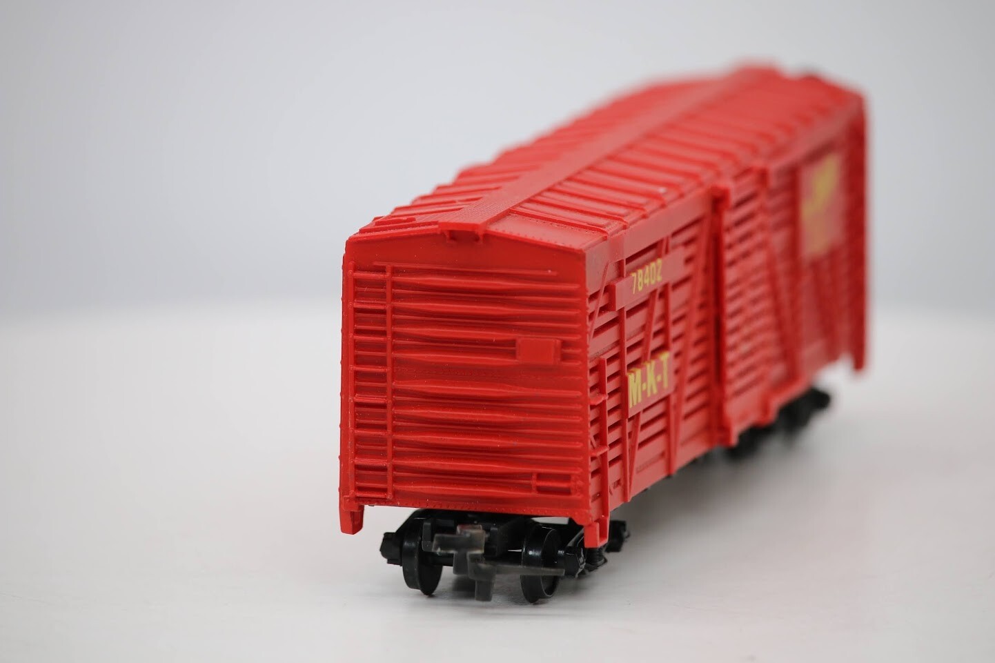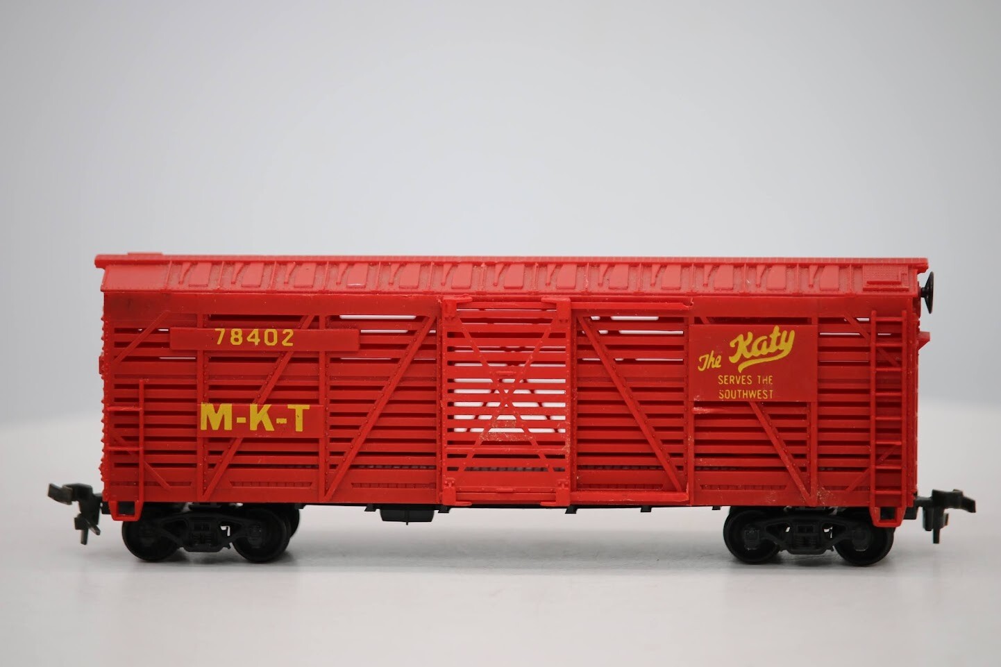 Lionel HO Scale "MKT - The Katy" 78402 40' Livestock Cattle Freight Train Car SKU#004598 Look closely at the pictures to see further details. We ships USPS PLEASE see photos for detailed condition!! PLEASE LOOK AT THE PHOTOS CAREFULLY BEFORE PURCHASING!! If you are purchasing more than one item from us and would like combined shipping, PLEASE request an adjusted invoice from us while still in the cart and BEFORE paying. eBay does not usually calculate combined shipping accurately and you might get overcharged. Please be aware that when we photograph items, we use lighting that will show the details well. Although we try to present the product as accurately as possible, the lighting may affect the overall look of the item by appearing lighter/darker or possibly a different hue than the actual item. Depending on the type of lighting you have in your home, there may be some differences between the photos and the actual item. If this is a concern of yours, please feel free to request additional photos made in natural lighting or ask for a more detailed description of the item PRIOR TO PURCHASE! PLEASE NOTE: We greatly appreciate your interest in our item for sale. We look forward to a pleasant, quick and satisfying transaction for everybody, so please note the following information before bidding. Thank you! ITEM DESCRIPTIONS: * We will try to describe items well and provide plenty of photos. Please review these carefully before bidding or purchasing. * Only the items pictured and described are what you will receive when purchased. * We will occasionally offer an item clearly marked "AS-IS". This means that we are not sure if it works because we are unable to test it for whatever reason. We will offer these at a discounted price then a similar "working" item. It is possible that these items will work fine, but it also is possible that these items are more useful for their parts. Please only bid on or purchase these items if you are well aware of this, as we will only provide refunds of actual item price (no shipping cost refunds) for these items. * If you have any questions that aren't addressed by the descriptions or photos, please feel free to ask before you bid. * There may be pieces that are missing or broken including, but not limited to, couplers, brake wheels, steps, ladders, railings, minor rust spots or cracks, etc. May need detailed cleaning SHIPPING: * We usually do not offer shipping to international addresses, but ARE WILLING TO TAKE CONSIDERATIONS. * We try to pack items as carefully as possible, but damage may occur during shipping. If you receive an item that was damaged in shipping, please contact us and we will work with you to resolve the problem. * We will combine shipping costs for all items the same buyer purchases from us within 2 days. Please wait to pay for items until you're done shopping with us. Please contact us if you're expecting to buy more items from us, or to have us adjust the shipping costs. * We will usually ship items out within 24 hours of payment being received Sunday through Friday at noon. We will notify the buyer if there will be a delay in shipping for some reason. Please allow additional time for holidays and weekends when the post office is closed. If payment is received after noon (EST) on Friday, the item might not be shipped until the following Monday. * We do try to recycle shipping materials as much as possible. RETURNS: We abide by eBay's Money Back Guarantee. We definitely want our customers to be happy with their purchase! You may return an item within 30 days of receiving it with the following guidelines: * If the item is defective or damaged (unless we clearly marked the listing "AS-IS"), the buyer will receive a full refund after the buyer returns it and it is received by us. Customers who falsely claim their item is defective, damaged, or not as described in order to receive a full refund and free return shipping will be permanently blocked from making future purchases from us. * If the item is as described (including "AS-IS" items) and the buyer decides for any other reason than defective/damaged to return it, only the actual price of the item will be refunded once it has been returned and it is received by us. The buyer will be asked to pay all original and return shipping charges. This includes all reasons other than defective/damaged, including wrong size, wrong type, changed mind, etc. All "AS-IS" items will fall into this category of return. Please make sure the item is what you want before purchasing it. * Please contact us before initiating a refund request. FEEDBACK: We always leave feedback at the end of transaction. We consider the transaction to be over when we receive feedback from the buyer confirming the item arrived satisfactorily. If you are unsatisfied with your purchase please contact us before leaving neutral or negative feedback. WE APPRECIATE POSITIVE FEEDBACK IF YOU ARE SATISFIED WITH YOUR PURCHASE! THANK YOU FOR YOUR INTEREST IN THIS ITEM!