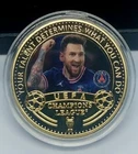 - 1 Box UEFA Champion League with Coin Lionel Messi in Paris Saint-Germain F.C. - 1 Card Topps Lionel Messi in Paris Saint-Germain F.C. - 1 Stand Holder.