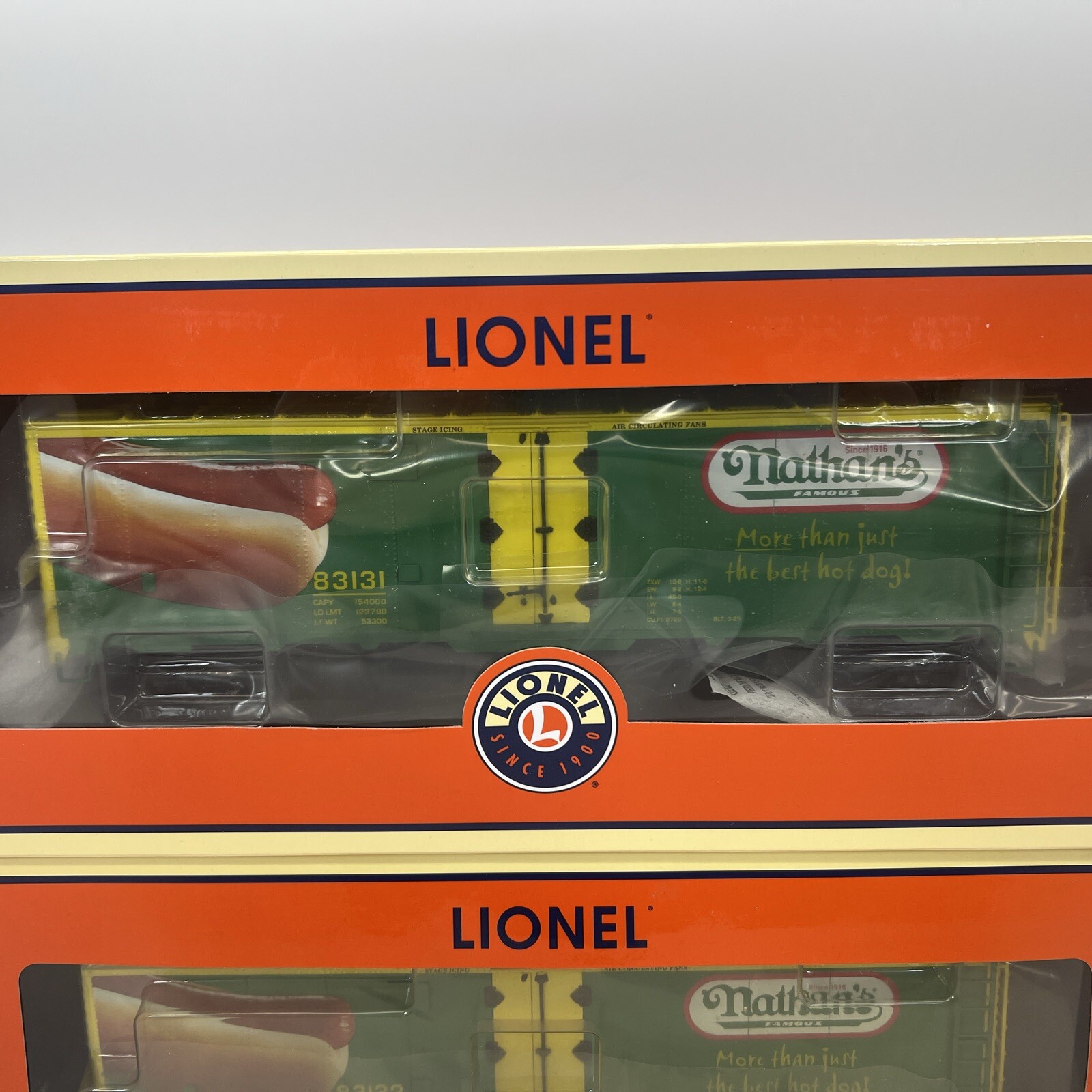 NASSAU LIONEL OPERATING ENGINEERS LOT OF 2 NATHAN'S HOT DOGS STEEL-SIDED REEFERS #83131 #83132 O GAUGE THREE RAIL 6-58567 6-58568 NEW! CLUB CARS. ORIGINAL BOXES. WILL BE PACKED TO ENSURE SAFE DELIVERY! Winning US bidder receives FREE SHIPPING USPS Priority UPS !! Canada Priority shipping is available . All other countries please email for a mailing quote. Thanks for looking! I ship everyday!!!!