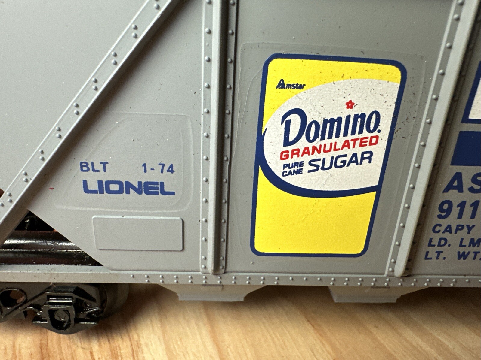 SOLD AS USED LOOKS UNUSED ORIGINAL BOX HAS LOOSE CELLOPHANE WINDOW and water damage stained CAR IS FLAT GRAY WITH DARK BLUE TOP EYE CATCHING DOMINO SUGAR BOXES I BRIGHT YELLOW ON EACH SIDE ROOF VENTS ALL INTACT ITEM WILL BE SECURELY WRAPPED AND QUICKLY SHIPPED WITHIN ONE BUSINESS DAY SOLD AS IS CONDITION