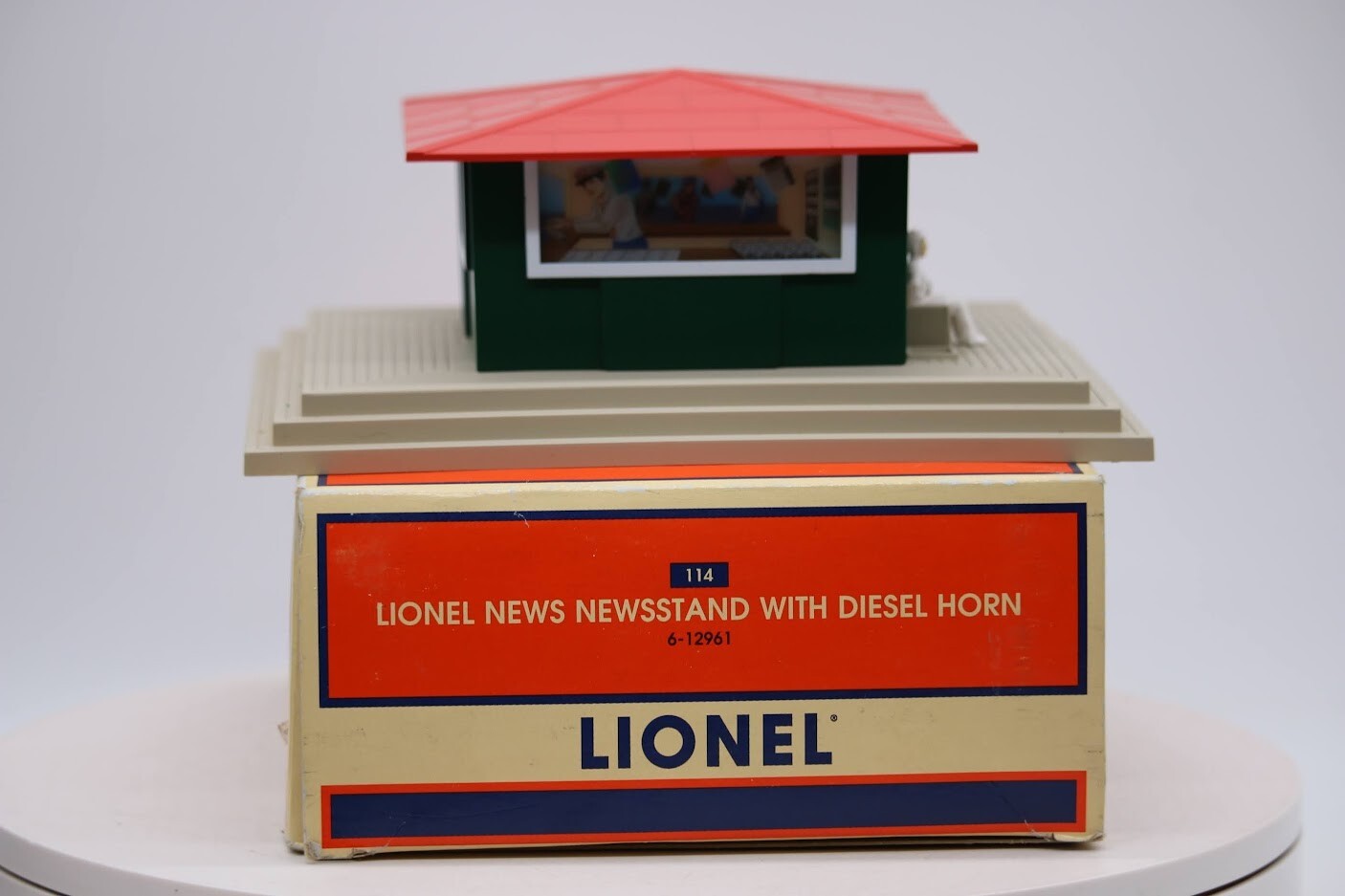 Lionel O Scale Operating Newsstand w/ Diesel Horn Item 6-12961 LN Look closely at the pictures to see further details. We ships USPS PLEASE LOOK AT THE PHOTOS CAREFULLY BEFORE PURCHASING!! If you are purchasing more than one item from us and would like combined shipping, PLEASE request an adjusted invoice from us while still in the cart and BEFORE paying. Ebay does not usually calculate combined shipping accurately and you might get overcharged. Please be aware that when we photograph items, we use lighting that will show the details well. Although we try to present the product as accurately as possible, the lighting may affect the overall look of the item by appearing lighter/darker or possibly a different hue than the actual item. Depending on the type of lighting you have in your home, there may be some differences between the photos and the actual item. If this is a concern of yours, please feel free to request additional photos made in natural lighting or ask for a more detailed description of the item PRIOR TO PURCHASE! PLEASE see photos for detailed condition!! There may be pieces that are missing or broken including, but not limited to, couplers, brake wheels, steps, ladders, railings, etc. May need detailed cleaning. PLEASE NOTE: We greatly appreciate your interest in our item for sale. We look forward to a pleasant, quick and satisfying transaction for everybody, so please note the following information before bidding. Thank you! ITEM DESCRIPTIONS: * We will try to describe items well and provide plenty of photos. Please review these carefully before bidding or purchasing. * Only the items pictured and described are what you will receive when purchased. * We will occasionally offer an item clearly marked "AS-IS". This means that we are not sure if it works because we are unable to test it for whatever reason. We will offer these at a discounted price then a similar "working" item. It is possible that these items will work fine, but it also is possible that these items are more useful for their parts. Please only bid on or purchase these items if you are well aware of this, as we will only provide refunds of actual item price (no shipping cost refunds) for these items. * If you have any questions that aren't addressed by the descriptions or photos, please feel free to ask before you bid. SHIPPING: * We offer international shipping, if you have any questions please reach out. * We try to pack items as carefully as possible, but damage may occur during shipping. If you receive an item that was damaged in shipping, please contact us and we will work with you to resolve the problem. * We will combine shipping costs for all items the same buyer purchases from us within 2 days. Please wait to pay for items until you're done shopping with us. Please contact us if you're expecting to buy more items from us, or to have us adjust the shipping costs. * We will usually ship items out within 24 hours of payment being received Sunday through Friday at noon. We will notify the buyer if there will be a delay in shipping for some reason. Please allow additional time for holidays and weekends when the post office is closed. If payment is received after noon (EST) on Friday, the item might not be shipped until the following Monday. * We do try to recycle shipping materials as much as possible. RETURNS: We abide by eBay's Money Back Guarantee. We definitely want our customers to be happy with their purchase! You may return an item within 30 days of receiving it with the following guidelines: * If the item is defective or damaged (unless we clearly marked the listing "AS-IS"), the buyer will receive a full refund after the buyer returns it and it is received by us. Customers who falsely claim their item is defective, damaged, or not as described in order to receive a full refund and free return shipping will be permanently blocked from making future purchases from us. * If the item is as described (including "AS-IS" items) and the buyer decides for any other reason than defective/damaged to return it, only the actual price of the item will be refunded once it has been returned and it is received by us. The buyer will be asked to pay all original and return shipping charges. This includes all reasons other than defective/damaged, including wrong size, wrong type, changed mind, etc. All "AS-IS" items will fall into this category of return. Please make sure the item is what you want before purchasing it. * Please contact us before initiating a refund request. FEEDBACK: We always leave feedback at the end of transaction. We consider the transaction to be over when we receive feedback from the buyer confirming the item arrived satisfactorily. If you are unsatisfied with your purchase please contact us before leaving neutral or negative feedback. WE APPRECIATE POSITIVE FEEDBACK IF YOU ARE SATISFIED WITH YOUR PURCHASE! THANK YOU FOR YOUR INTEREST IN THIS ITEM!