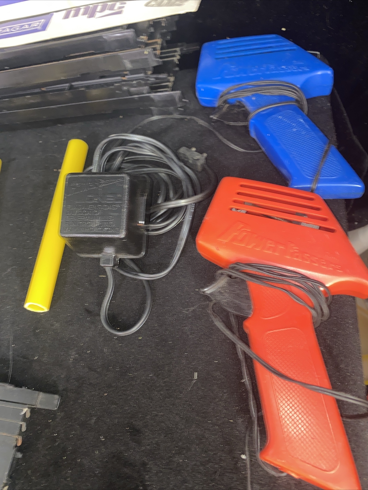 Get ready to race with this Lionel Power Passers Slot Car set! With 14 pieces of track and lots of accessories,The set comes with two power controllers, so you can control the speed of your car as you navigate through the curves and straightaways. A power supply 2 pieces of high back track 5 straight pieces. Five curves and 2 station pieces. Also has a bag of parts and pieces. NO CARS. This set is perfect for someone with an existing track that wishes to expand. . The accessories included allow you to customize your track and add some extra excitement to your races. Whether you're a fan of slot cars or just looking for a new hobby, this Lionel Power Passers set is sure to provide hours of entertainment. Pieces have light dust and tracks have rust in areas. Untested. Unsure if it works. Sold as is.