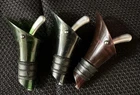 This lot includes 19 pieces of bar liquor bottle pourers, stoppers, spouts, and dispensers in a variety of colors and materials. The set includes items from brands such as Metrokane, Spirit Saver, and Crate & Barrel. These pourers are perfect for home bartenders or professional mixologists looking to add some flair to their cocktail presentations. Each piece in this lot is made with high-quality materials like cork, stainless steel, plastic, and metal. The multicolor assortment is perfect for adding some variety to your barware collection. Use these pourers to create unique drinks and impress your guests with your cocktail-making skills. In this lot of 19 pieces, you will receive assorted pourers, stoppers and foil cutters. Some are vintage, some are not. There are some still new in their original packaging. Brands including Metrokane, Spirit Saver, Crate & Barrel are in this collection, plus more. See photos for details.
