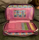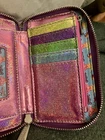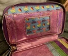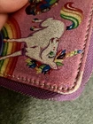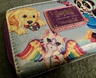 The Lisa Frank Color Block Unicorn Panda Kitten & Aliens Wallet by Loungefly is a stylish and fun accessory for women. Featuring a multicolor design with a unicorn theme, this zip-around wallet is both functional and fashionable. It includes credit card slots and a zipper closure, making it practical for everyday use. The compact size of 6 inches in length and 4 inches in width makes it easy to carry in your bag or pocket, adding a playful touch to any outfit. This wallet is in very good condition with some minor wear around the edges as I’ve shown in the pictures. If you have any questions please feel free to message! Thank you! ~Stacey