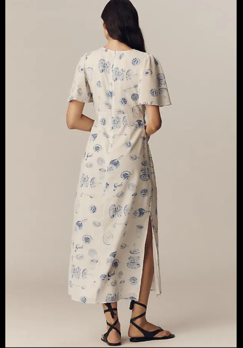 Anthropologie x Lisa Says Gah Dress Womens Large Cream Blue Caviar Dreams Jess Midi Flutter Sleeve. New with original tags, original MSRP of $198, sold out style. No stains, tears, or signs of wear noted, please review all photos. See photos for measurements. If we missed something, don't worry, we offer free returns. Just indicate, "just didn't like it," for any reason, and we'll pay for the return. Thanks for visiting!