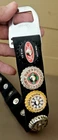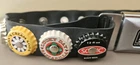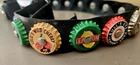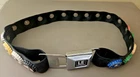 This is a vintage Little Earth Y2k Soda Pop Bottle Cap Seat Belt Buckle Rubber Adjustable Belt. The belt is made of stretchy black rubber and Stainless metal hardware, and it features studded accents with bottle caps. The seat Belt Buckle clasp works just like a seat Belt in your car BUT IT ALSO DOUBLES AS A BOTTLE OPENER!! The belt is adjustable with snaps and has a multicolor design. The brand is Little Earth, and it is an original item from the 1990s. The belt is suitable for adult unisex wear and has a casual look. It is an Earth-friendly accessory and is a great addition to any vintage collection. Size is adjustable Stretches and has adjustable snaps from size 29" - 33"