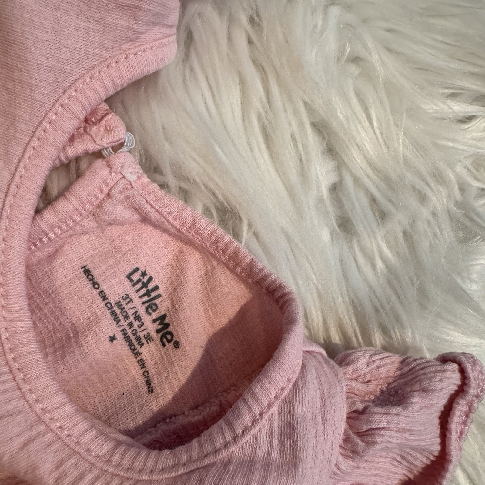 Adorable Little Me toddler girls’ 3T two-piece outfit set in a soft light pink color. Gently used and in good condition. Please Note: Pants have a small stain on the front (shown in photos). Includes a sleeveless ruffle-trim top with a peplum silhouette and matching wide-leg cropped pants. Perfect for spring and summer, playtime, daycare, or everyday wear. Smoke & Pet Free Home