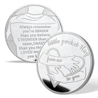 Still wondering what to add in a collection ? A special and long-last memory gift for your girlfriend, your wife, your daughter, your niece ? Or the connection between you and your most important one. You can always find your own treasure here. How long do you never hug your family, friends, cousins or someone else you care? Take a simple breath, leaving few free time to sit on the table chair, sofa, lounge to have a warm talking with them, showing your inner world's feeling, and then, having a warm hug with them. You will find the world looks so beautiful, and nothing could be better. ( ◠‿◠ )* About the item Our little pocket hug challenge coin is 1.37 inch in diameter and 0.12 inch in thickness, and it is made of iron plated silver. It's very easy to carry in your daily life, such as put it in a pocket, purse, backpack, or put it on display on any table or desktop. In life, work or study, we will encounter various difficulties and setbacks, which make us lack fighting spirit. At this time, you can hold this coin to remind yourself that you are far more brave than you imagined. Be strong and can overcome any difficulty. The obverse side of the pocket hug coins is engraved with " Little Pocket Hug from me to you ". The reverse side is engraved with " Always remember you're BRAVER than you believe, STRONGER than you seem, and SMARTER than you think, and LOVED more than you know ". This cheer up gifts is the perfect gift for your family, friends, employees and colleagues to show them your miss, care, encouragement and support. It is as if you are always with them. It's perfect as a gift or keepsake for your friends, family and colleagues on birthdays, thanksgiving, Christmas, graduation, school, leaving and leaving home etc. Owing it, challenging your life, showing your strong, never give up. SUPER ATTENTION IF THERE HAVE MORE COIN BUYING, MORE DISCOUNT WILL GAIN FOR YOU. Package Each coin will be packed up individually with a plastic case suit in opp bag. Shipping We'll start shipping as soon as possible within 3 business day normally. Tracking will be available after several hours. Feedback We try to make sure ALL customers are satisfied with our services, if you do, a POSITIVE feedback is appreciated, thank you very much. And we always leaving a positive one for customer when item is delivered successfully. Contact Us Feel free to contact us at any time, we're happy to help. You can reach us by eBay or E-mail. Have a nice day! Pls check the item specification carefully before buying it.