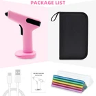 15S FAST PREHEATING: The mini cordless glue gun fast preheat within 15s. It is faster than all the conventional glue guns! Eliminating long wait times and significantly enhancing work productivity. Press about 5s to turn on/off the cordless glue gun. 4000mAh LONG-LASTING BATTERY: This small hot glue gun is equipped with a 4000mAh premium lithium-ion battery, the cordless glue guns can work for up to 100 minutes. Come with a Type-C charging cable, Charging Anywhere! No cord No limits! 5 MINUTES AUTOMATIC POWER OFF PROTECTION: The cordless glue gun with intelligent safety system will power off automatically when it has been inactive for more than 5 minutes, safety and saves energy. Anti-drip Design and heat resistant silicone nozzle prevent leakage making this cordless glue gun extremely safe to use. Type-C QUICK CHARGING: TWO WAYS to charge the cordless glue gun. Charge the glue gun directly or Charge with dock. FRONT LED LIGHT FLASHING when glue stick is about to run out. This cordless glue gun perfect for Crafts, school DIY projects, home repairs CORDLESS HOT GLUE GUN KIT: This mini cordless hot glue gun come with 30 glue sticks(10 colored and 20 clear, Size: 0.28inch*4inch), 1 x Carry Case, 1x Type-C charging cable, 1 x charging Base. If you have any issues while using this cordless glue gun kit please contact us.