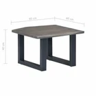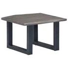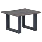 This wooden coffee table features a cool, industrial style and will make a great addition to your home or office. The tabletop is made of sturdy, solid acacia wood. Its unique, U-shaped, powder-coated metal legs add to the industrial style and make the table exceedingly stable. Additionally, the wood's live edge that follows the natural shape of the tree increases the beauty of the table. The coffee table is easy to assemble. Please note that wood is a natural product and may show imperfections. Color: Gray Material: Solid acacia wood with a gray finish (tabletop) + powder-coated iron (legs) Dimensions: 23.6" x 23.6" x 15.7" (L x W x H) With live edge that follows the natural shape of the tree Shipping Restrictions Due to the limited access of our couriers, this item cannot be delivered to the following locations: Alaska Federated States of Micronesia Guam Hawaii Marshall Islands Military Posts (APO / FPO) Palau Puerto Rico US PO BOX Virgin Islands Our customer support will contact buyers for orders with no shipment service, and these orders will be cancelled and fully refunded afterwards.