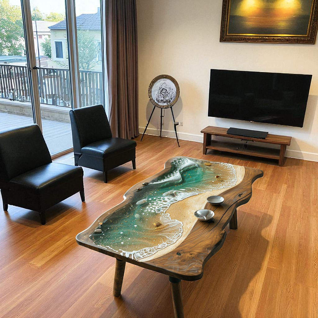 Live Edge Ocean Wave Epoxy Table Handmade Furniture for Hotel Decor