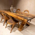 Live Edge Walnut Resin Dinner Table, Epoxy Resin Kitchen Table, Walnut Slab Tops