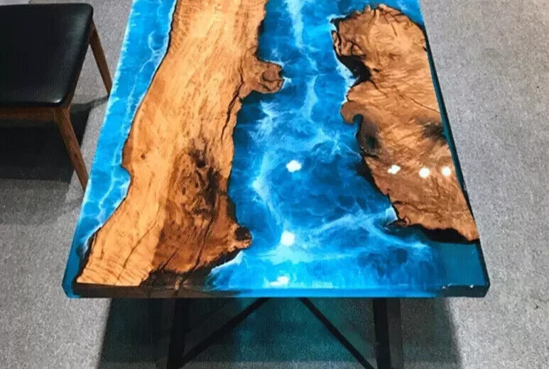 Bring the beauty of the ocean into your living room with this stunning, one-of-a-kind ocean epoxy wooden table. Each piece is meticulously handcrafted using high-quality wood and vibrant, custom-blended epoxy resin to create a breathtaking ocean-inspired design that will be the focal point of any space. Features: Handmade Craftsmanship: Each table is individually crafted by skilled artisans, ensuring no two pieces are alike. The natural wood grain and custom epoxy resin blend create a truly unique design. Stunning Ocean-Inspired Design: The rich, deep blues and shimmering waves capture the calming essence of the sea, making this table a statement piece in any living room, den, or office. Premium Materials: Made from high-quality, durable wood and top-grade epoxy resin, this table is both visually striking and built to last. Live Edge: The live edge design preserves the natural beauty of the wood, adding an organic touch that enhances the overall aesthetic. Versatile Size: Perfectly sized to function as a coffee table or accent table, it adds both beauty and functionality to your space. Customizable Options: Want to tweak the colors or finish? Reach out for custom requests to make this table truly yours. Dimensions : Used Material: Epoxy Wooden And Resin Handmade Arts Color: Blue Size: 48"x24" Inches Shape: Rectangle Pattern: Handmade Room: Bedroom, Dining Room, Hallway, Home Office/Study, Kid’s Bedroom, Kitchen, Laundry/Utility Room, Living Room, Patio, Playroom Packaging: Wood & Foam Export Packing Care Instructions: Wipe clean with a soft, damp cloth. Avoid harsh chemicals or abrasive cleaners to maintain the integrity of the wood and resin. Make a bold statement and invite the serene beauty of the ocean into your home with this handmade ocean epoxy wooden table. Order today and elevate your living space with a piece that combines art, nature, and function! NOTE : Only table top leg is not included. Kindly Note: Please contact me if you have any kind of query.Buyers are liable for any customs and import taxes that may apply. I'm not liable for delays due to customs. Buyers are liable for any customs and import taxes that may apply. I'm not liable for delays due to customs.