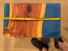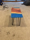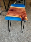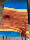 This listing is for a custom Live Edge Wood Table. We have access to very unique live edge slabs. This Northern Wisconsin father and son team use only the highest quality of hardwoods and epoxy materials in our work, and we love to make these stunning works of art. They are unfinished on the bottom side of the table since the hardware and table legs are installed on this side. (See pic #9) The tabletop is a gloss finish topcoat epoxy that makes the surface look like glass! The table legs also have non marring rubber feet. All table corners and edges are rounded to provide a perfect table without any hard edges. Table dimensions are: Length-19.5" Width-11.75" Height- 16.25" Weight-9 lbs This approach means not getting rid of the live edge in our natural edge furniture but embracing it. The natural edge that is inherent in a wood slab is the inspiration for the creation of our designs. The curves and juts, the shades of dark and light, the contours and imperfections—these are what is so unique to each piece of wood. Relying on nature to supply the inspiration for our live edge furniture creates a supreme individuality for each piece – simply not something that can be fabricated artificially. This is an Epoxy Resin Coffee Table made with which is beautified with colored epoxy resin. The resin river table has just been finished and the contemporary design would be a unique addition to your home. With its perfect combination of style and function this piece of furniture is sure to be the star of any room. This modern table will also make for an awesome gift for your friends or relatives. These are thick, heavy, and very sturdy tables. Each one is created with high quality resin and individually handcrafted. Resin is a highly reflective medium which will catch anyone’s eye walking into the room. All tables are finished to the highest standard with food grade materials. The epoxy resin is very strong & durable with specialized UV resistance. The tables are delivered flat packed. Simply bolt the included legs on to the table bottom using the pre-drilled holes with screws that YOU provide. Raw wood is used in its natural form and shape to make this table. T he table shown in the photos has so much more wood grain uniqueness than any number of pictures could possibly show. You truly have to see it!! I'm not liable for delays due to shipping or the installation of the table legs . Tracking number will be provided upon shipping.