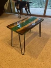 Shape: Rectangular Item Height: 16" Year Manufactured: 2024 Material: Wood Color: Green Tabletop Material: wood and epoxy MPN: Does Not Apply Assembly Required: Yes Item Length: 23.5" FSC Certified: No Pattern: Solid Personalized: No Maximum Length: 23.75 Additional Parts Required: No Department: Adults Handle Material: Walnut Style: Art Deco Features: Live Edge Wood Required Tools: Screwdriver, Wrench Tabletop Thickness: 1" Country/Region of Manufacture: United States Original/Reproduction: Original Care Instructions: Clean with Dampen Cloth Indoor/Outdoor: Indoor Finish: Glossy Type: End & Side Tables Item Width: 11.75" Item Weight: 9lbs Brand: Table