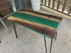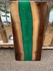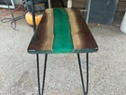 Live Edge wood and epoxy-Black Walnut with Green Sparkle Epoxy Table