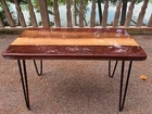This listing is for a custom Live Edge Wood Table. We have access to very unique live edge slabs. This Northern Wisconsin father and son team use only the highest quality of hardwoods and epoxy materials in our work, and we love to make these stunning works of art. They are unfinished on the bottom side of the table since the hardware and table legs are installed on this side. (See pic #12) The tabletop is a gloss finish topcoat epoxy that makes the surface look like glass! The table legs also have non marring rubber feet. All table corners and edges are rounded to provide a perfect table without any hard edges. Table dimensions are: Length-23.5" Width-11.75" Height- 16.25" Weight-9 lbs This approach means not getting rid of the live edge in our natural edge furniture but embracing it. The natural edge that is inherent in a wood slab is the inspiration for the creation of our designs. The curves and juts, the shades of dark and light, the contours and imperfections—these are what is so unique to each piece of wood. Relying on nature to supply the inspiration for our live edge furniture creates a supreme individuality for each piece – simply not something that can be fabricated artificially. This is an Epoxy Resin Coffee Table made with which is beautified with colored epoxy resin. The resin river table has just been finished and the contemporary design would be a unique addition to your home. With its perfect combination of style and function this piece of furniture is sure to be the star of any room. This modern table will also make for an awesome gift for your friends or relatives. These are thick, heavy, and very sturdy tables. Each one is created with high quality resin and individually handcrafted. Resin is a highly reflective medium which will catch anyone’s eye walking into the room. All tables are finished to the highest standard with food grade materials. The epoxy resin is very strong & durable with specialized UV resistance. The tables are delivered flat packed. Simply bolt the included legs on to the table bottom using the pre-drilled holes with screws that YOU provide. Raw wood is used in its natural form and shape to make this table. T he table shown in the photos has so much more wood grain uniqueness than any number of pictures could possibly show. You truly have to see it!! I'm not liable for delays due to shipping or the installation of the table legs . Tracking number will be provided upon shipping.
