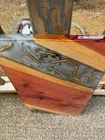 This listing is for a custom Live Edge Wood Table. We have access to very unique live edge slabs. This Northern Wisconsin father and son team use only the highest quality of hardwoods and epoxy materials in our work, and we love to make these stunning works of art. They are unfinished on the bottom side of the table since the hardware and table legs are installed on this side. (See pic #10) The tabletop is a gloss finish topcoat epoxy that makes the surface look like glass! The table legs also have non marring rubber feet. All table corners and edges are rounded to provide a perfect table without any hard edges. Table dimensions are: Length-19.75" Width-11.75" Height- 16.5" Weight-9 lbs This approach means not getting rid of the live edge in our natural edge furniture but embracing it. The natural edge that is inherent in a wood slab is the inspiration for the creation of our designs. The curves and juts, the shades of dark and light, the contours and imperfections—these are what is so unique to each piece of wood. Relying on nature to supply the inspiration for our live edge furniture creates a supreme individuality for each piece – simply not something that can be fabricated artificially. This is an Epoxy Resin Coffee Table made with which is beautified with colored epoxy resin. The resin river table has just been finished and the contemporary design would be a unique addition to your home. With its perfect combination of style and function this piece of furniture is sure to be the star of any room. This modern table will also make for an awesome gift for your friends or relatives. These are thick, heavy, and very sturdy tables. Each one is created with high quality resin and individually handcrafted. Resin is a highly reflective medium which will catch anyone’s eye walking into the room. All tables are finished to the highest standard with food grade materials. The epoxy resin is very strong & durable with specialized UV resistance. The tables are delivered flat packed. Simply bolt the included legs on to the table bottom using the pre-drilled holes with screws that YOU provide. Raw wood is used in its natural form and shape to make this table. T he table shown in the photos has so much more wood grain uniqueness than any number of pictures could possibly show. You truly have to see it!! I'm not liable for delays due to shipping or the installation of the table legs . Tracking number will be provided upon shipping.
