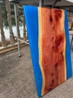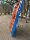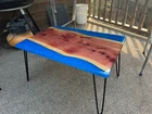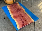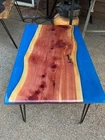 This listing is for a custom Live Edge Wood Table. We have access to very unique live edge slabs. This Northern Wisconsin father and son team use only the highest quality of hardwoods and epoxy materials in our work, and we love to make these stunning works of art. They are unfinished on the bottom side of the table since the hardware and table legs are installed on this side. (See pic #9) The table legs also have non marring rubber feet. All table corners and edges are rounded to provide a perfect table without any hard edges. Table dimensions are: Length-30.25" Width-19.75" Height- 16.5" Weight-14 lbs This approach means not getting rid of the live edge in our natural edge furniture but embracing it. The natural edge that is inherent in a wood slab is the inspiration for the creation of our designs. The curves and juts, the shades of dark and light, the contours and imperfections—these are what is so unique to each piece of wood. Relying on nature to supply the inspiration for our live edge furniture creates a supreme individuality for each piece – simply not something that can be fabricated artificially. This is an Epoxy Resin Coffee Table made with which is beautified with colored epoxy resin. The resin river table has just been finished and the contemporary design would be a unique addition to your home. With its perfect combination of style and function this piece of furniture is sure to be the star of any room. This modern table will also make for an awesome gift for your friends or relatives. These are thick, heavy, and very sturdy tables. Each one is created with high quality resin and individually handcrafted. Resin is a highly reflective medium which will catch anyone’s eye walking into the room. All tables are finished to the highest standard with food grade materials. The epoxy resin is very strong & durable with specialized UV resistance. The tables are delivered flat packed. Simply bolt the included legs on to the table bottom using the pre-drilled holes with screws that YOU provide. Raw wood is used in its natural form and shape to make this table. T he table shown in the photos has so much more wood grain uniqueness than any number of pictures could possibly show. You truly have to see it!! I'm not liable for delays due to shipping or the installation of the table legs . Tracking number will be provided upon shipping.