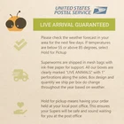 Ships Monday - Thursday SUPERWORM CO SUPERWORMS! We offer the healthiest Superworms on the Web! Every Superworm we sell is grown by us! Live Superworms - 50-2000 counts - 4 different sizes - First Class/Priority Mail. If your temps are Below 55F or Above 85F Please choose Hold for pick to ensure safe delivery and guaranteed Live arrival . If you choose to not select hold for pickup when your Temps are unsafe please understand that your Superworms may by DOA and we will not replace them. We have been growing and shipping supers for over a decade. All our supers are raised with greatest care and nutritional value in mind.