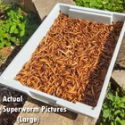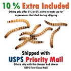 *** BUYER NOTICE *** We offer a generous 10% extra superworms deal as part of our Live Delivery policy. Others only offer 5%, or none in terms of over packing . *** If your shipment does not arrive well, contact us within 24 hours and please provide photos of the shipment. We guarantee live delivery to locations between 55° ~ 85°F *** Please read our Return policy below for more details. Thanks for checking out Many Mealworms! As our name implies, we sell many different offers of superworms and mealworms. This is the listing of our 50-500 large superworms. The size of our large size superworms is approximately 1.5" to 2". Our bulk live superworms are healthy, being raised on wheat bran and organic carrots here in the sunshine state of Florida. With these qualities, our superworms are great for many types of pets such as birds, reptiles, and tropical fish. But before you order from us, please feel free to read about our shipping and return policies located at the bottom of this page. Shipping Policies Exciting Update Since December 2021 This rule applies to everyone in the United States. All superworms will be shipped from Monday to Thursday using fast and free USPS Priority Mail shipping. Approximate delivery time is between 1-3 days. Orders placed before 2:30 PM EST is the last time to get your superworms shipped the same day . Orders placed after 2:30 PM EST on Monday to Wednesday will be shipped the next day. If you order after 2:30 PM EST on Thursday till Sunday night, your superworms will be shipped the following Monday. For residents around the Tampa Bay region, special one day shipping will apply (due to location proximity). Return Policies If the temperature of your local area is below 55° F or above 85°F, please select “yes” on the hold for pickup option. It is also a good idea to select "yes" on the hold for pickup option if you cannot pick up the superworms as soon as it is delivered. Superworms cannot tolerate hot or cold temperatures, which means that having them sit in the mailbox or porch for a long time could lead to dead worms. Every shipment will contain 10% of extra superworms to account for any dead superworms upon arrival. Should there be more than 10% superworms dead upon arrival, please take a photo and send it to us within 24 hours of receiving the package. Depending on the number of dead superworms, we will provide you with either a refund or reorder. Our superworms have a live guarantee policy when being held for pickup or delivered in temperatures between 55°F and 85°F. Live Delivery cannot be guaranteed if you selected "no" on the hold for pickup option when your local temperature is below 55°F or above 85°F. Now that you have read our shipping and return policies, we hope that you will receive great superworms for your awesome animals. Many deals, many memories, Many Mealworms! Instructions on how to take care of superworms If you are planning to not refrigerate the mealworms, they will need to be placed into a Sterilite container or cup full of wheat bran. Wheat bran acts as both a substrate and food and helps to keep your mealworms happy and fed. To provide moisture for your mealworms, you can choose between adding carrots and potatoes. Add only enough carrots and potatoes so that the mealworms can eat within one day, as adding too much can cause the uneaten vegetables to become moldy. Once the vegetables are finished by the mealworms (approximately one day) replenish their supply of carrots or potatoes. Never refrigerate superworms! Unlike mealworms, superworms cannot tolerate low temperatures.They will die if they are left in a refrigerator.
