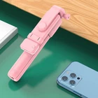 Feature: 1. Rotating Base: With its 360 degree rotating base, you can take incredible photos in vertical and horizontal directions, and you can catch the best moments with your family or travel from any angle. 2. Telescopic: This selfie stick has retractable crutches and 3 deployable legs, which can be used as a tripod on any plane. 3. Foldable: You can take it anywhere you want because of its foldable portability, with your selfie stick, you can take pictures anywhere, thanks to its affordable size, you can keep it in a bag or backpack so that you can accompany you on the journey. 4. Remote Control: In order to take pictures at a place of up to 10 meters, this self portrait stick has a removable camera button connected to the phone BT, which is convenient for taking pictures. 5. Battery Powered: You do not need to charge, because it comes from the 3V button battery, which is convenient and durable for battery powered. Specification: Item Type: Tripod Selfie Stick Material: Stainless Steel, ABS Gross Weight: 130g / 4.6oz Product Size: Approx.18.5 x 4.5 x 3.8cm / 7.3 x 1.8 x 1.5in Stretching Length: Approx.70cm / 27.6in Shrinkage Length: Approx.18.5cm / 7.3in Battery: 3V CR1632 button battery for remote control BT Distance: 10m Package List: 1 x Selfie Stick 1 x Remote Control Note: Fill light is not included.
