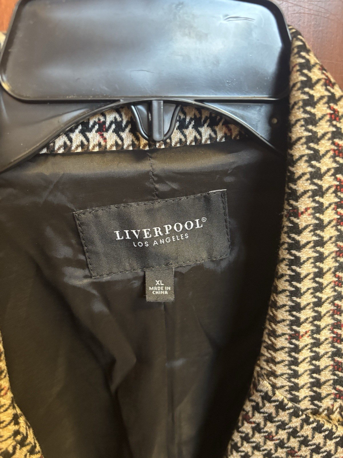 The Liverpool Los Angeles Houndstooth Blazer in size XL is a stylish and versatile addition to any woman's wardrobe. Made from a polyester blend outer shell, this blazer features a houndstooth pattern in a vibrant multicolor design. With a basic jacket style and regular fit, this blazer is perfect for adding a pop of color and sophistication to any outfit. Ideal for a casual day out or a night on the town, this blazer is a must-have for fashion-forward women looking to make a statement.