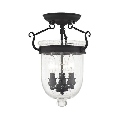 Livex Lighting 5081-04 Jefferson 3-Light Ceiling Mount, Black TRADITIONAL DESIGN. Drawing inspiration from traditional furnishing and décor, our wide range of traditional style lights incorporate timeless designs that add a touch of elegance and blend in perfectly in your home. STEEL BUILD. Our lights have been make from high quality steel material which is not only considerably light, mechanically strong and durable but is also aesthetically appealing. CEILING MOUNTS. Featuring minimalistic but elegant designs, our great collection of wall mounts can be used in your foyer, living area or hallway adding a touch of class. Black finish with Seeded Glass Product Dimensions: 10" dia. x 14" Shipping We offer FREE shipping on all orders! We ship within Three business days of payment, usually sooner. We use a selection of shipping services such as UPS, FedEx, USPS etc. We only ship to the lower 48 states, no APO/FPO addresses or PO Boxes allowed. Local pickups and combined shipping options are not provided at this time. Return You can return a product for up to 30 days from the date you purchased it. Any product you return must be in the same condition you received it and in the original packaging. Please keep the receipt. Payment We accept payment by any of the following methods: PayPal Please pay as soon as possible after winning an auction, as that will allow us to post your item to you sooner! Feedback Customer satisfaction is very important to us. If you have any problem with your order, please contact us and we will do our best to make you satisfied. Contact Us If you have any queries, please contact us via ebay. We usually respond within 24 hours on weekdays. Please visit our eBay store to check out other items for sale! Thank you for shopping at our store.