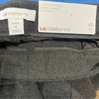 The Liz Claiborne Emma Charcoal Gray Ankle Length Mid Rise Zip-Up Pants in size 6 are a versatile and stylish addition to any woman's wardrobe. Made from a comfortable and stretchy blend of polyester, nylon, spandex, and rayon, these pants feature a flattering tapered leg style and a practical ankle length. The mid-rise waist and zip, hook & eye closure ensure a comfortable and secure fit, while the easy-care fabric makes them convenient for everyday wear. Perfect for various occasions such as travel, parties, or work, these pants in a sophisticated charcoal gray color offer both style and comfort.