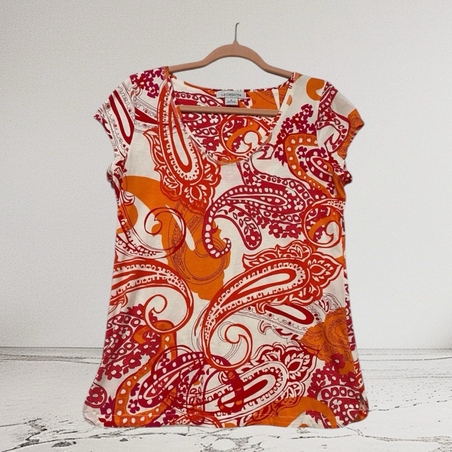 Liz Claiborne Cap Sleeve Paisley Print Tee Blouse Top Gorgeous Multicolor Paisley Print Size Medium Armpit to Armpit is Approximately 18.5 inches Top to Bottom is Approximately 25.5 inches Lightweight & Comfy Cotton Modal Blend Scoop Neck Cap Sleeves Casual Chic Make sure to Compare Measurements to items you already own & love to ensure a Good Fit before placing an order & for best buying experience ! We Ship out all purchases within 1 business day of payment. Automatic $10 flat Rate Combined Shipping on all items added to cart & paid for together in 1 order. 30 day Free Returns just in case you don’t Love it ! Happy Shopping 😊
