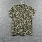 Liz Claiborne Women Top Medium Green Geometric Short Sleeve Shirt Stretch Top is in good pre-owned condition. There are no issues noted. Please see photos for condition and measurements to ensure fit. Size: Medium Items are shipped out via USPS First Class, Priority Mail or UPS Ground with a tracking number for confirmation. Items ship same day/Next Day shipping so expect a quick delivery. Buy More & Save! Combined shipping for US customers - $1.99 for each additional item (Add items to shopping cart and discounts will automatically calculate during checkout) All of our measurements are approximate and provided in photos. Please compare the measurements we provide to an article of clothing you have that already fits.