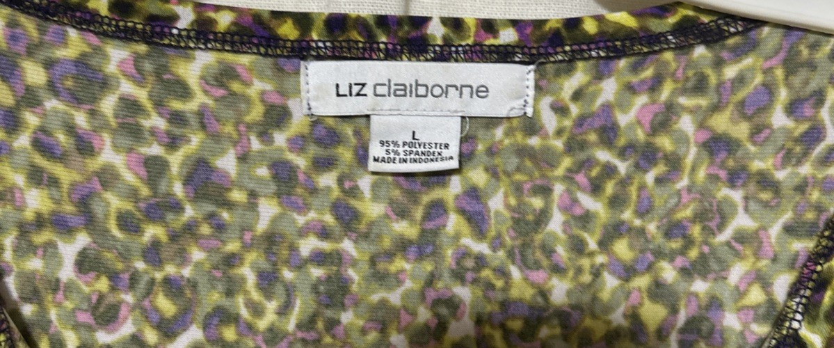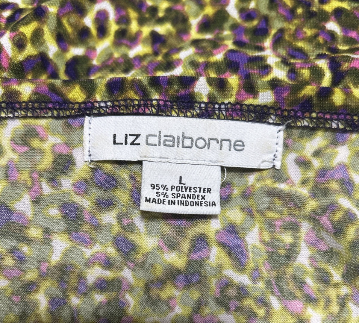 The Liz Claiborne Green Pink Animal Print Slinky Pullover Blouse Top in size L is a stylish and versatile piece for women. Made of lightweight and stretchy microfiber fabric, this blouse features a V-neckline, short cap sleeves, and a colorful animal print pattern. With a pullover closure and wrinkle-resistant properties, it is perfect for various occasions such as travel, parties, casual outings, work, and business meetings. Easy to care for with machine washable instructions, this blouse combines classic and modern elements to create a fashionable look suitable for different seasons like summer, fall, and spring. Measurements are accurate within an inch and are taken with item lying flat. Length: Approx. 25" Chest (pit to pit): Approx. 21" Sleeve: Approx. 13" Thanks for shopping! ***Make sure your Ship-To address is correct.
