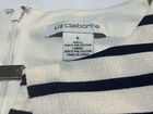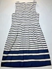 Liz Claiborne size 6 navy/white stripes silver colored hardware key hole neck line rear zip closure beautiful, classy, YOU. shell & lining 100% polyester made in china machine wash cold, tumble dry low lightly used but wholly loved!-- Please see photos for measurements and condition details. Feel free to ask any questions or for more pictures if needed! **be sure to check out my other clothing listings for similar styles and sizes! pre owned items may show normal signs of use-- if see any stains, rips, etc., I will do my best to provide photos. do not hesitate to ask for more information if needed and feel free to combine orders to save on shipping!