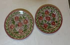Add a touch of elegance to your dining table with this beautiful set of two round salad plates by Liz Vigoda. Each plate measures 8.2 inches in diameter and features a hand-painted floral pattern in a glossy finish. These original art pottery plates are made of high-quality ceramic and are perfect for all occasions. Care instructions include hand wash only and the plates come with a painted backstamp. The set includes two plates and is an original production style of the late 20th century. The plates weigh 2 pounds each and are a perfect addition to any collection.
