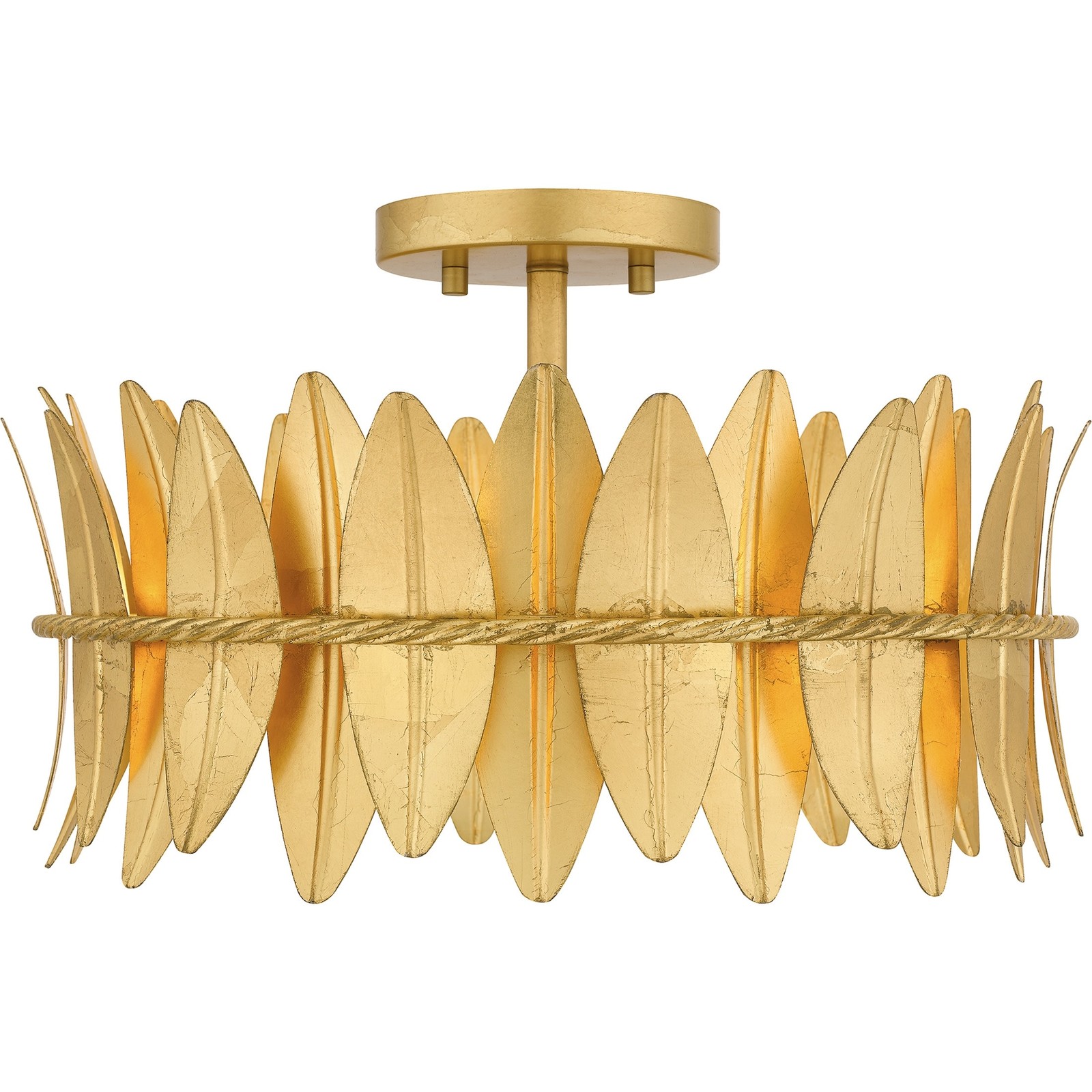 The Liza collection is as modern as it is glamorous. A braided metal rope wraps delicately around varying sizes of leaf for a beautiful effect, all finished in a shimmery gold. Available as a semi-flush mount or pendant light, Liza makes a perfect addition in any hallway, kitchen, foyer, home office, or living area. Free Shipping Over $49.99* Details Liza 3-Light Gold Leaf Semi-Flush Mount Light Product Description: The Liza collection is as modern as it is glamorous. A braided metal rope wraps delicately around varying sizes of leaf for a beautiful effect, all finished in a shimmery gold. Available as a semi-flush mount or pendant light, Liza makes a perfect addition in any hallway, kitchen, foyer, home office, or living area.
