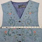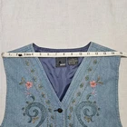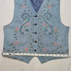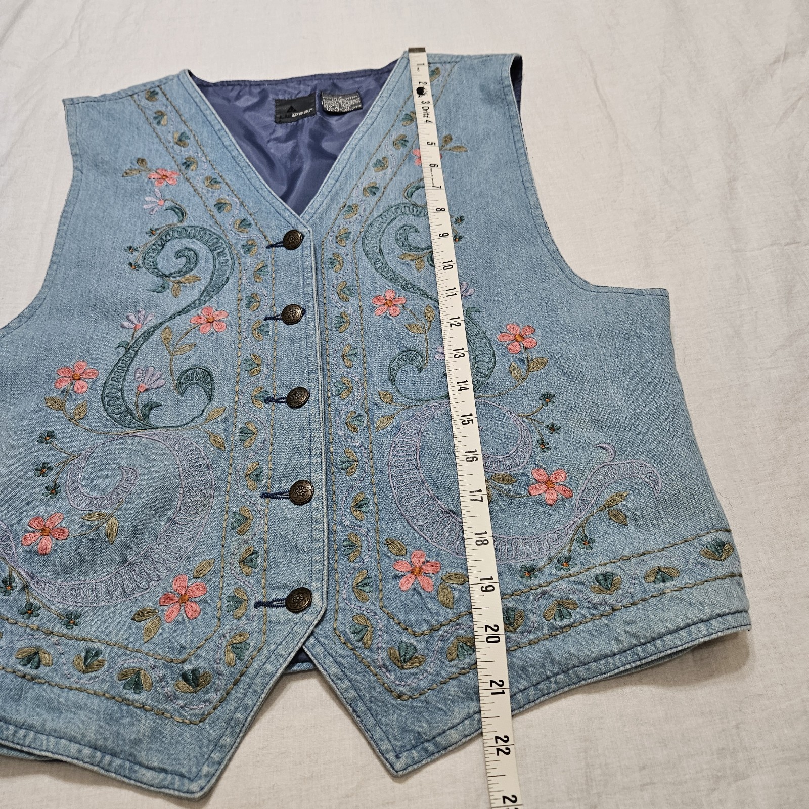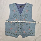 The Lizwear Vintage Jean Vest is a stylish and versatile piece for women in size medium (see pictures). Made from cotton denim with embroidered accents, this short-length vest features a button-up closure and is machine washable for easy care. Perfect for casual occasions, the vest is lined and suitable for any season. With a vintage 90s theme, this vest from Lizwear offers a classic yet trendy look for any wardrobe.