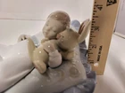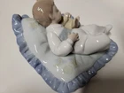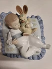 NEW IN BOX Lladro Spain Taking A Snooze Figurine 6791 Sleeping Baby Boy & Bunny. Handmade, Handpainted Porcelain Retired. 4" ht, 6" Length, 5.5" Width. 2# 4 oz wt before packaging for shipment.