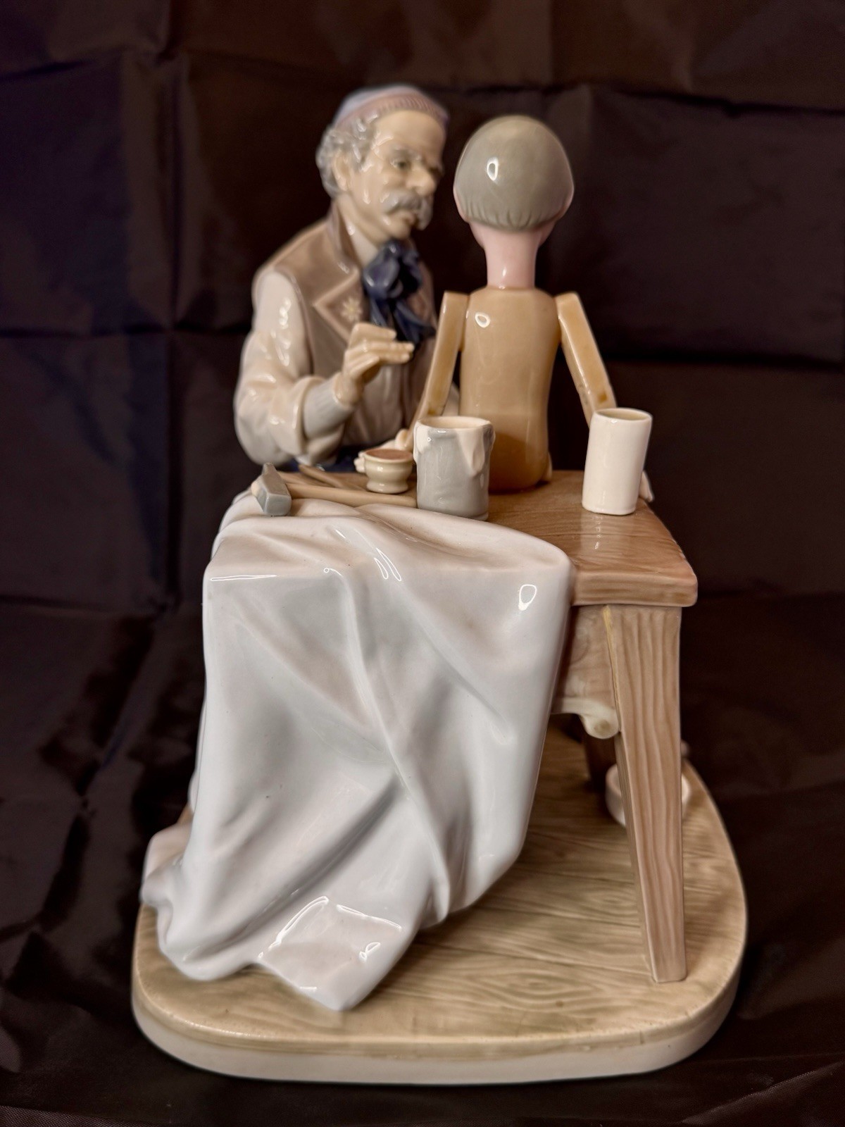 Lladro figure of “Toy Maker” (Geppetto and Pinocchio) in good condition. Made in Spain, stamped logo on the bottom with engraved production number. Does not come in original box, does not come with paintbrush, hence discounted price. Compare pricing to $395 online (recently sold w/o box). Message me for any questions you may have.