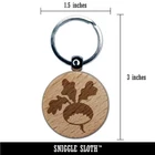 Llavero redondo de madera grabada de rábano huerto de jardín con etiqueta