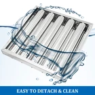 Introduction 【SAFETY & HIGH PERFORMANCE】 - TECSPACE commercial hood filter is made of premium 430 stainless steel which possesses advantages of corrosion resistance and rust protection.TECSPACE exhaust hood allows air to change the direction,collecting the grease in the air,which then enters the bottom of the filter through the oil outlets.It provides 100% flame shield to eliminate fire accidents caused by high temperature lampblack. 【EASY TO DETACH & CLEAN】 - The design of the two side handles makes disassembly easier. Low maintenance cost and easy to clean. Reasonable 12 oil outlets, not easy to be blocked by grease.Equipped with 5 oil repellent grooves,high air volume,not blocking the wind.The smooth surface enable grease to flow smoothly into the groove. Dimension:15.5" W x 15.5" H x 1.9" TH Quantity: 6Pcs/Set 【EXCELLENT WELDING& POLISHING】 - TECSPACE kitchen baffle grease filter looks more beautiful,its quality and stability is greatly promoted after the stainless steel material perfectly welded.Exquisite workmanship,the edge of the outer frame is carefully polished, which is round and smooth and will not hurt hands. 【LIGHTWEIGHT & EASY TO INSTALL】 - TECSPACE grease filter is required to be installed vertically so that oil bead can vertically flow down to the bottom.Suitable for kitchens,restaurants hotels,keeping kitchen utensils and hood surfaces clean and effectively preventing grease from dripping onto food and causing food contamination. 【OUR QUALITY COMMITMENT】 - This premium commercial range hood filter stay lubricated and clean while cooking,making you more assured.If you have any questions during use, just write us an email, we offer 100% SATISFACTION GUARANTEE and 60-DAY MONEY BACK GUARANTEE , and we will give you a satisfactory response immediately. Features 1. PREMIUM 430 STAINLESS STEEL TECSPACE commercial hood filter is made of premium 430 stainless steel which possesses advantages of corrosion resistance and rust protection. 2. EASY TO DETACH & CLEAN Dimension: 15.5" W x 15.5" H x 1.9" TH Quantity: 6Pcs/Set The design of the two side handles makes disassembly easier. Low maintenance cost and easy to clean. 3. 5 GREASE REPELLENT GROOVES Equipped with 5 oil repellent grooves,high air volume,not blocking the wind. The smooth surface enable grease to flow smoothly into the groove. 4. EXCELLENT WELDING & POLISHING The stainless steel material is perfectly welded,exquisite workmanship,the edge of the outer frame is carefully polished, which is round and smooth and will not hurt hands. 5. REASONABLE 12 OIL OUTLETS This 15.5" W x 15.5" H range hood filter has reasonable 12 oil outlets, not easy to be blocked by grease. The smooth surface enable grease to flow smoothly into the groove. 6. APPLICATIONS Suitable for kitchens,restaurants hotels,keeping kitchen utensils and hood surfaces clean and effectively preventing grease from dripping onto food. Advantages This premium commercial range hood filter stay lubricated and clean while cooking.The exhaust hood allows air to change the direction,collecting the grease in the air,which then enters the bottom of the filter through the oil outlets.This grease filtration method creates a 100% flame shield to stop fires from entering exhaust hoods, roof ducts, etc. and prevent further damage to our buildings.These features are attributed to the high quality stainless steel baffle material and the shape design. Low maintenance cost, easy to clean. Stable quality, its performance exceeds any other type of grease filter. Provide 100% flame shield to prevent fire accidents caused by hot oil and heavy cooking fumes. Simple installation, the handle design makes the installation much easier. Ensure the surface of kitchen utensils and hoods are kept clean, effectively prevent grease from dripping down to food from causing food contamination. Specification Product Dimension (Single): 15.5" W x 15.5" H x 1.9" TH Material: 430 Stainless Steel Quantity: 6Pcs/Set Gross Weight (6Pcs/Set): 18.1 lbs / 8.2 kg Packaging Dimension: 16.5 x 16.5 x 13.4 inches / 42 x 42 x 34 cm Note: Our grease filter is required to be installed vertically so that oil bead can vertically flow down to the bottom. Package Content 6 x Baffle Grease Filter With 5 Grooves