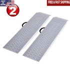 The Set of 2 Ramps for Lawn Mower by Stalwart is the perfect solution for getting your ATV, motorcycle, golf cart, or mower safely into a trailer or shed. Each motorcycle ramp has a 600-pound weight capacity for scooters or dirt bikes or use them together for 4-wheeler vehicles up to 1200lbs. These utility trailer accessories can be bolted together (hardware not included) to make unloading deliveries using a dolly easier. Made of high-quality steel, handles for portability, and skid resistant tread, the trailer ramps heavy duty will assist tires of any kind into a van, shed, or trailer. SHED RAMPS - The set of 2 ATV ramps are the perfect solution for getting your ATV, motorcycle, or mower safely into a trailer or shed and can be bolted together for a larger track. 1200LB CAPACITY - With a 600lb weight capacity each, these heavy-duty trailer ramps can be used separately for moving dirt bikes in and out of vans or used together for 4-wheel vehicles up to 1200lbs. SUPREME TRACTION - Weighing 9lbs each with integrated handles, each lightweight ATV ramp is easily portable with skid resistant tread and angled foot plates for smooth transitions. MULTIPURPOSE - The ramp set is designed for ATVs but can also create easy transitions when driving the lawn mower into the shed, making deliveries in the city, or loading your motorcycle on a trailer. MATERIALS - Steel. DIMENSIONS - (L) 35. 5” x (W) 8. 5” x (H) 2”; Foot Plate: (L) 4”. Weight Capacity: 600lbs Each or 1200lbs Combined. COLOR - Silver.