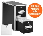 Vaultz CD Holder Cabinet – Locking 2-Drawer Media Storage Box – Black Sturdy, high-capacity CD storage cabinet organizes a maximum of 330 CDs Reliable key locks provide security. Each drawer is divided into three compartments Each drawer accommodates 165 CDs in CD file folders 60 CDs in slim cases or 30 CDs in full size jewel cases Label holders on drawer fronts for organization Black