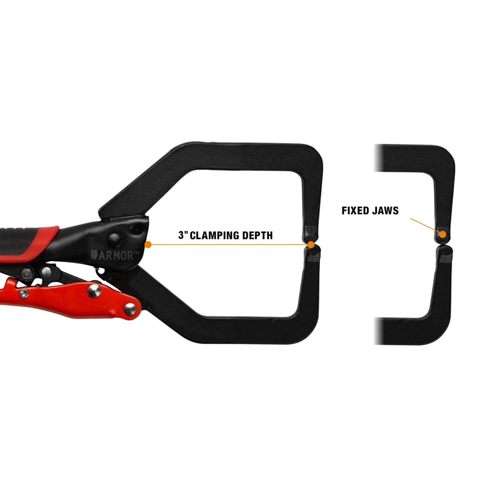 Auto-adjusting - Our Armor Tools Automatic C-Clamps use cutting-edge Auto-Adjust technology, ensuring a secure grip on various thicknesses without the need for constant readjustment. Effortless Clamping - Say goodbye to manual adjustments with our Locking C Clamps. Just tweak the pressure screw, and you're ready to clamp effortlessly, saving you time and effort. Consistent Hold - Experience uniform clamping force every time. Armor Vise grip clamps are engineered to consistently grip any material placed between them, providing reliability and peace of mind. Soft Grip Handle - Work comfortably for longer periods with the soft-grip handle on our Vice Grip Clamps, reducing fatigue and enhancing your overall work experience. Versatile & Reliable - Trust in the versatility and reliability of our Armor Clamps for a wide range of applications. Whether you're a professional or DIY enthusiast, these clamps have you covered