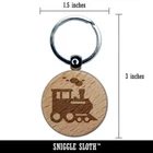 Locomotive Railway Train Engine Engraved Wood Round Keychain Tag Charm