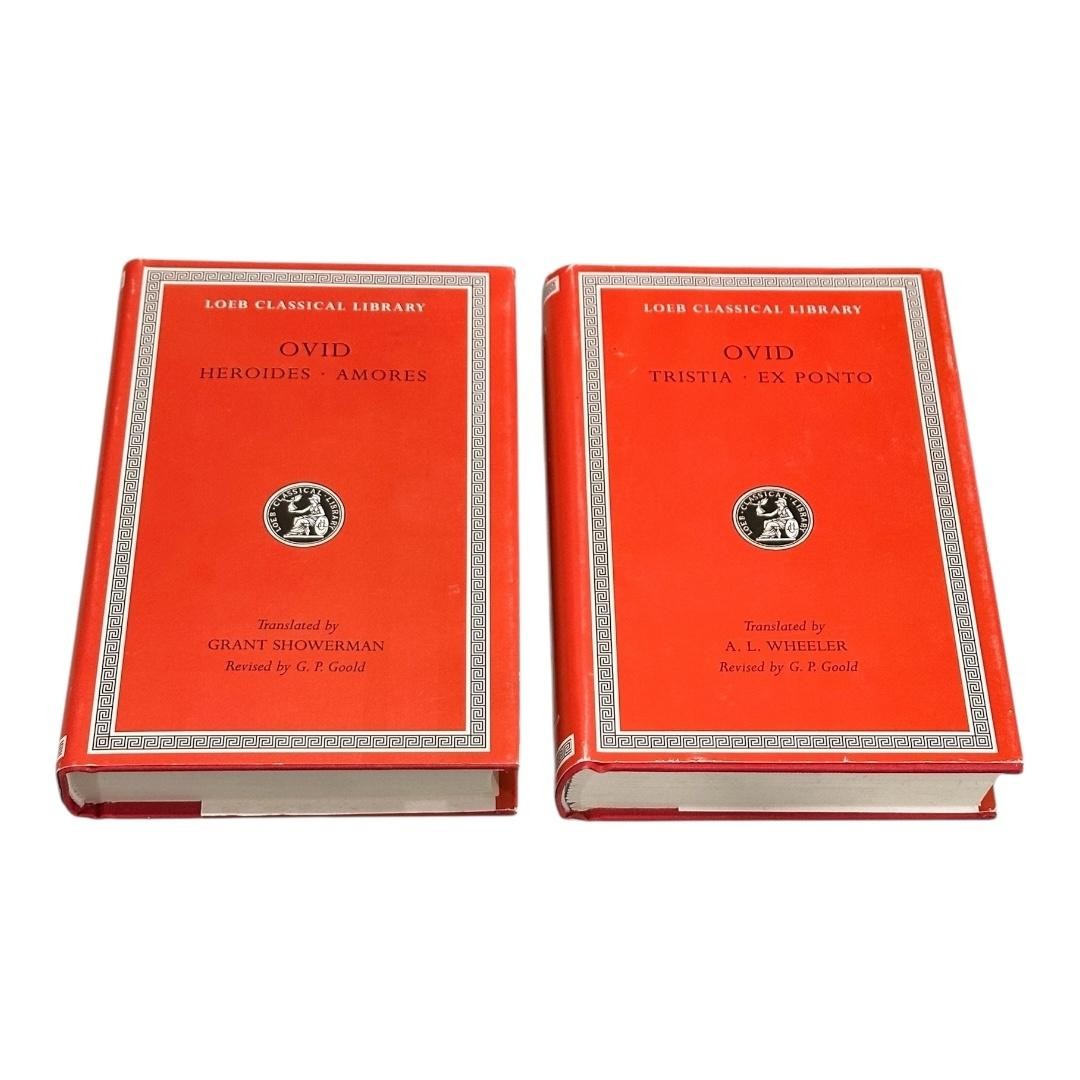 Brand/Publisher: Harvard University Press, Loeb Classical Library edition of Latin authors in dual-language Latin and English format. Title/Set: Loeb Classical Library Latin Authors Collection (12 Volumes), including works by Horace, Ovid, Macrobius, Petronius, Seneca, Tertullian, Minucius Felix, Manilius, Apuleius, and Cato. Volumes included and contents: Horace: Odes and Epodes (edited and translated by Niall Rudd); Horace: Satires, Epistles, Art of Poetry (translated by H. R. Fairclough); Ovid: Heroides and Amores (translated by Grant Showerman, revised by G. P. Goold); Ovid: Tristia and Ex Ponto (translated by A. L. Wheeler, revised by G. P. Goold); Macrobius: Saturnalia, Books 1–2, 3–5, and 6–7 (edited and translated by Robert A. Kaster); Petronius: Satyricon with Seneca's Apocolocyntosis; Tertullian: Apology and De Spectaculis with Minucius Felix: Octavius; Manilius: Astronomica; Apuleius: Apologia, Florida, and De Deo Socratis; and Cato: Testimonia and Origines. Format and design: Twelve matching red cloth hardcovers in red dust jackets with silver Greek-key borders, Loeb Classical Library medallion on the front panel, and bilingual text with the original Latin on the left-hand page facing the modern English translation on the right. Standard octavo Loeb format printed on acid-free paper with sewn bindings and headbands for durability, suitable for long-term library or personal study use. Genre/Topics: Ancient Roman literature and world classics spanning lyric and satiric poetry, love elegy, didactic astronomy, the Saturnalia banquet dialogue, early Christian apologetic and philosophical works, and Roman historiography, ideal for adult students, scholars, and general readers of classical studies and intellectual history. Identifiers and publication details: Each volume is a modern Harvard University Press Loeb Classical Library printing; a visible example ISBN from the Tertullian and Minucius Felix volume reads ISBN: 978-0-674-98276-4, printed on acid-free paper and bound by The Maple-Vail Book Manufacturing Group in the United States; copyright and printing years vary by volume within the set. Additional notes: Complete matched set of twelve Latin author volumes as pictured, all with dust jackets and no slipcase, offered as standard hardcovers only with no author signatures or supplemental media included.